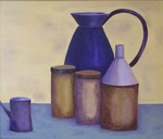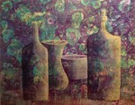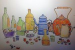 20133 wijnflessen én een voerbakje voor de hond? Om het even. Het spelen met kleuren, vormen en schaduwen is een plezier op zich waarbij het niet uitmaakt wat er op de tafel staat.