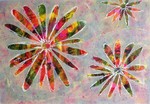 2016Getracht met stukjes behangpapier geïnspireerd door een op stof geborduurd bloemstukje een eigen nieuw bloemboeketje te maken. Inzending voor een wedstrijd van de Kantfabriek Horst. Helaas, alleen ik vond hem goed genoeg.