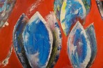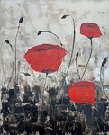 2015Luid applaudiserend staat de klaproos in de wei genietend van al het leven om haar heen. Alleen de wind kan haar enthousiasme in één klap doen verstommen. Helaas. (geheel vervaardigd met paletmes)
